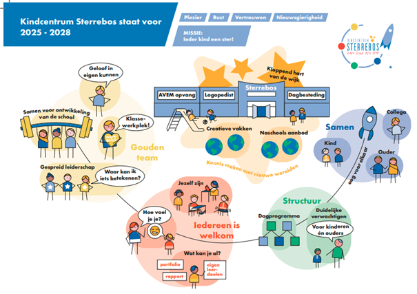 Op Kindcentrum Sterrebos werken we vanuit onze kernwaarden Rust, Vertrouwen, Nieuwsgierigheid en Plezier.